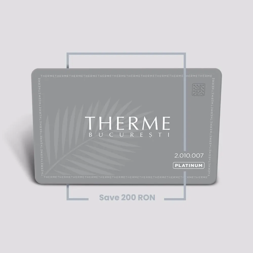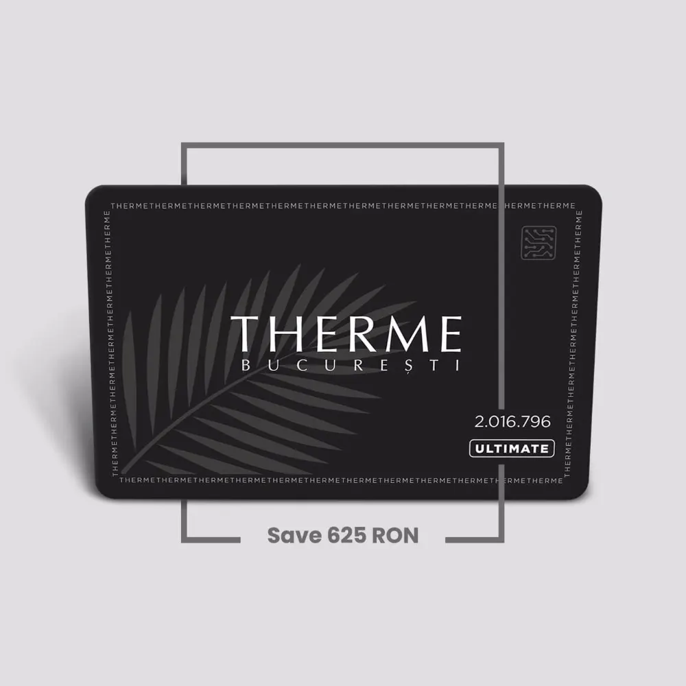 Folosește-l pentru achiziția biletelor de acces la Therme București, precum și pentru produse și servicii din complex. Cardul poate fi utilizat direct la casele de marcat, dar nu este valabil pentru cumpărături online. Suma rămasă pe card poate fi folosită pentru vizite viitoare, însă nu poate fi returnată în numerar. Cardul este valabil 1 an și nu poate fi returnat după achiziție. Bucură-te de fiecare moment de relaxare!